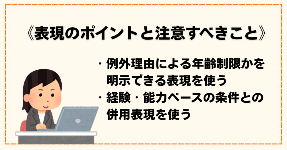 例外事由で年齢制限を使えると判断した場合でも、表現の仕方や文言の選び方は注意が必要です。