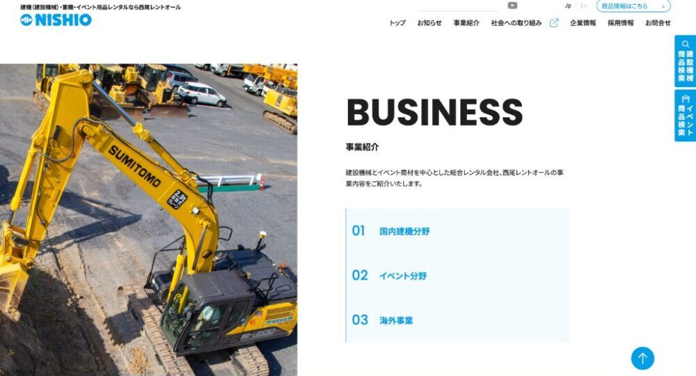 西尾レントオール株式会社は建設機械、イベント用品等のレンタルや商品の開発を手がける総合レンタル会社です。