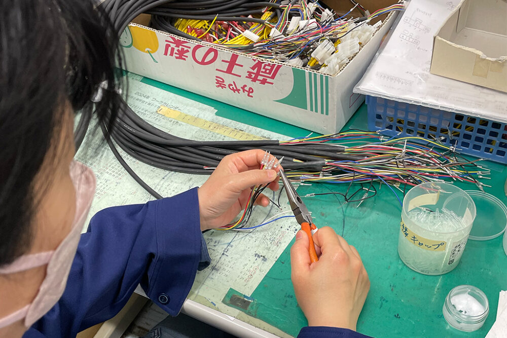 配線作業では、見栄えや分かりやすさへの配慮に加え、電子部品を壊さないよう正確な作業が求められます。