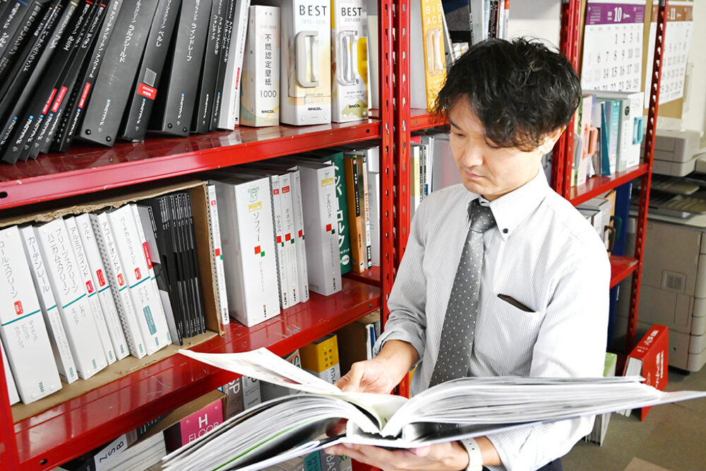 例えば、壁紙ではバリエーションの豊富さが強みとなり、多くのお客様にリピートされています。また、新しい商品が開発された際には、グループのメーカーの担当者から直接、新商品の勉強会や説明会を受けられるため、常に最新の知識を習得できる環境です。