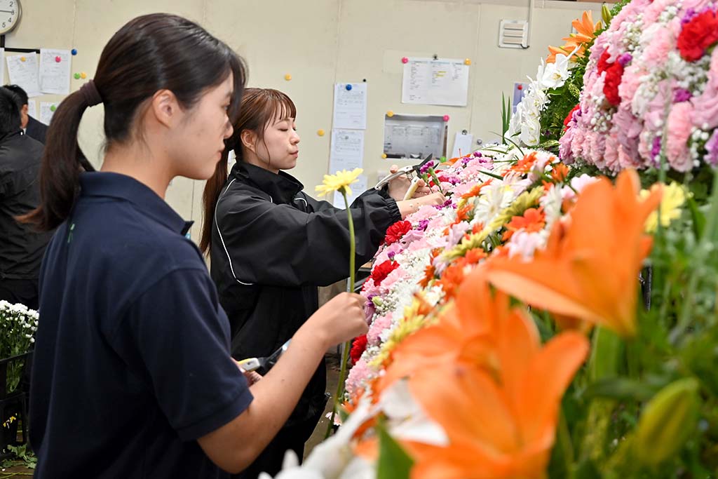 | 事業内容 | 生花祭壇事業 <生花祭壇事業の3チーム> ◎受注担当「想いを受ける」 葬儀社のご担当者様からの注文及びお問い合わせを対応します。 お客様のリクエストを間違いやズレのないように、丁寧にヒアリングします。 ◎制作担当「想いを形にする」 受注担当からの指示書を元に、花の調達から生花祭壇の制作までを担当します。 イメージ通りの生花祭壇を作るために、豊富な知識と高い技術で業務を進めていきます。 ◎配送/装飾及び設置担当「想いを届ける」 制作された生花祭壇の会場への運び入れから設置までを担当します。 様々な会場の形があるため、空間を余すことなく制作された生花祭壇が、最も美しく見えるように設置していきます。 ★ビューティ花壇東日本が大切にする5つの柱 『ビューティ花壇さんのお花は綺麗だね』そんな言葉をお客様からいただけることが、何よりの喜びであり、そして常に目指している目標です。 そのために大切にしている5つの柱。 ①花の調達:世界のトレンドを把握し、国内外からより良い花を用意します。 ②鮮度管理:水やりの仕方は花によりけり。花々の鮮度が良い状態を保てるよう管理は怠りません。 ③加工技術:祭壇のデザインや花の色選び、長年の技術が集約しています。 ④対応力:受注から祭壇に花が飾られるまで、お客様のニーズに合わせて柔軟に対応をします。 ⑤機動力・組織力:効率的な組織運営で、迅速な対応を行います。 最期を飾る式典までの短い期間の中で、最高の生花祭壇がご提供できるようすべてのポジションのスタッフが想いをつなげながら日々業務に取り組んでいます。 |