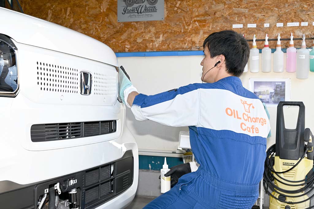 作業するのは軽自動車が中心です。軽自動車をメインで取り扱う販売店なので、体力的な負担も少なめ。もちろん、普通車も含めメーカー問わず取り扱いますので、幅広い知識と技術が身につきます。