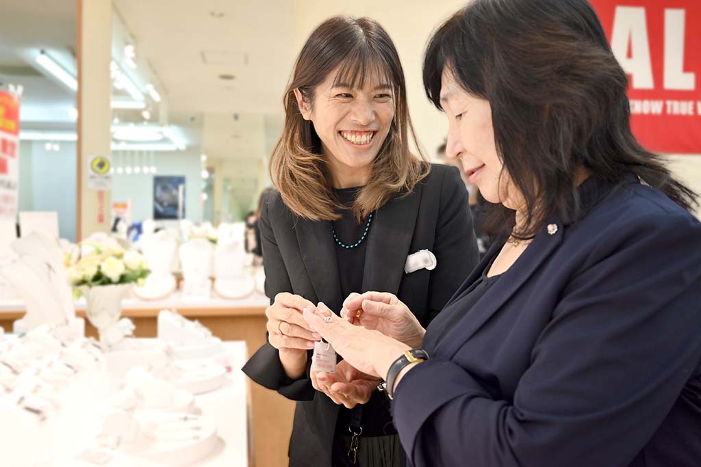 また、通常の宝石店と違い、全商品がオープンレンジで自由に試着できる点もお客様に大変喜ばれています!