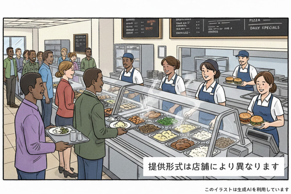 ※飲食店によりサービス提供方法は異なりますが、フードコートやカフェなどのイメージです